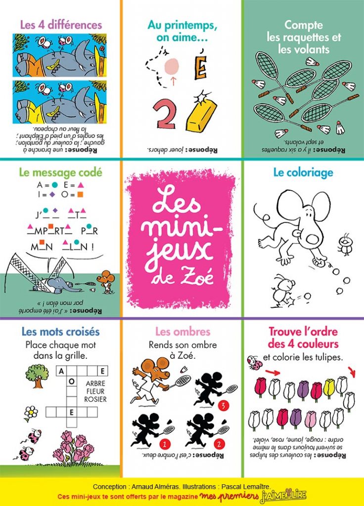 Le magazine Mes Premiers J’aime lire offre des rébus, des coloriages, des sudokus, des jeux de lettres, de logique, d’observation… aux 6-7 ans. Imprimez le thème qui plaît à votre enfant : Zoé, la petite souris, a plus d’un tour dans son sac pour le distraire tout en l’aidant à progresser en lecture !