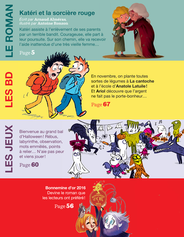 - 20 pages de BD : En novembre, on plante toutes sortes de légumes à La cantoche et à l’école d’Anatole Latuile ! Et Ariol découvre que l’argent ne fait pas le porte-bonheur….