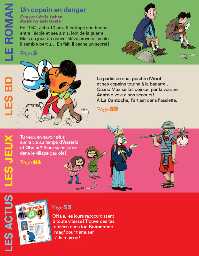 • Les BD : La partie de chat perché d’Ariol et ses copains tourne à la bagarre… Quand Max se fait coincer par la voisine, Anatole vole à son secours ! À La Cantoche, l’art est dans l’assiette.